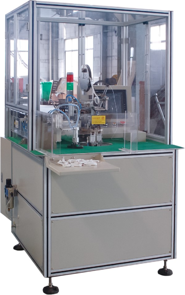 本機用于汽車起動電機定子扁線磁場線圈包扎絕緣帶的專用設備。采用三菱PLC程控,彩色觸摸屏控制參數(shù),機械手自動上下工件,放入線圈定好角度參數(shù)后,自動轉(zhuǎn)位過彎包帶,并自動滴膠固定帶頭,線圈全方位包帶,操作簡單,使用方便。