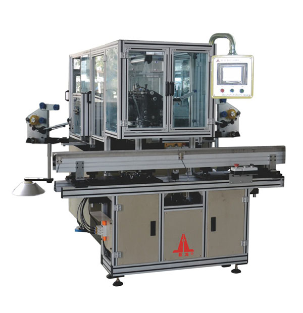 Applicable to the slotted motor with a hook commutator rotor double flywheel automatic winding. The machine can be connected with other equipment, the use of mechanical hand to complete automatic transmission clamping, winding, cutting, a high degree of automation. All the processes are continuous working, the use of detachable type change tooling, tension adjustable tension, winding evenly, the production of the three servo system, PLC program, color touch screen display, automatic positioning, indexing, winding, hook, efficient.