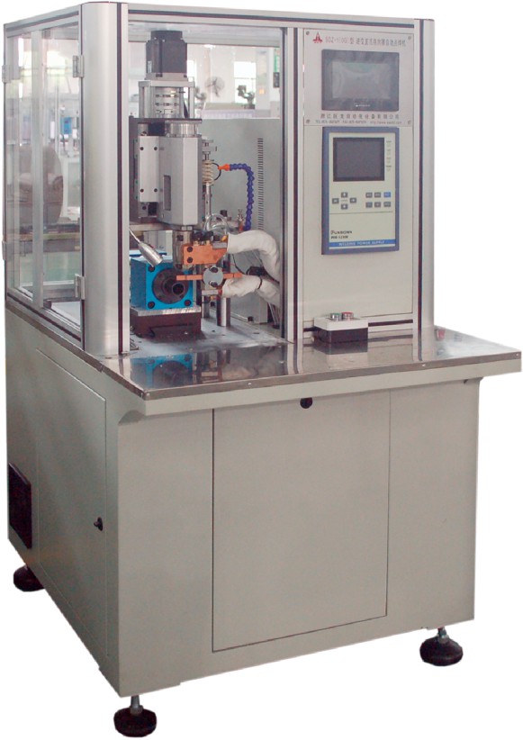 This machine is a special welding equipment designed for motor commutator and thicker armature winding connection .Imported PLC controller and touch screen display control welding action, servo motor torque controls pressure, ball screw driven by synchronous pulley controls welding, welding points can be set in a single pressure, the configuration of high-power domestic joint inverter welding control, can set constant current, constant power, constant voltage,can be selected by the reasonable choice of welding current to achieve high-quality welding, the workpiece mechanical positioning on the slot, angle compensation can be set, all actions once completed, superior performance, high-quality welding.